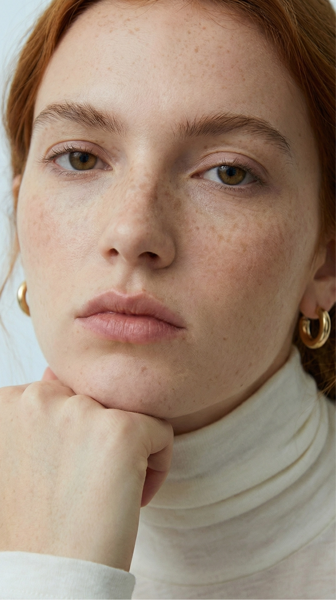 הסוד לריאליזם נמצא דווקא בפרטים הלא מושלמים. במקום עור חלק שנראה כמו פילטר ביוטי, נלמד להכניס נקבוביות, שינויי גוון עדינים ופגמים קטנים שקיימים במציאות. זה מה ששובר את מראה הפלסטיקי.
